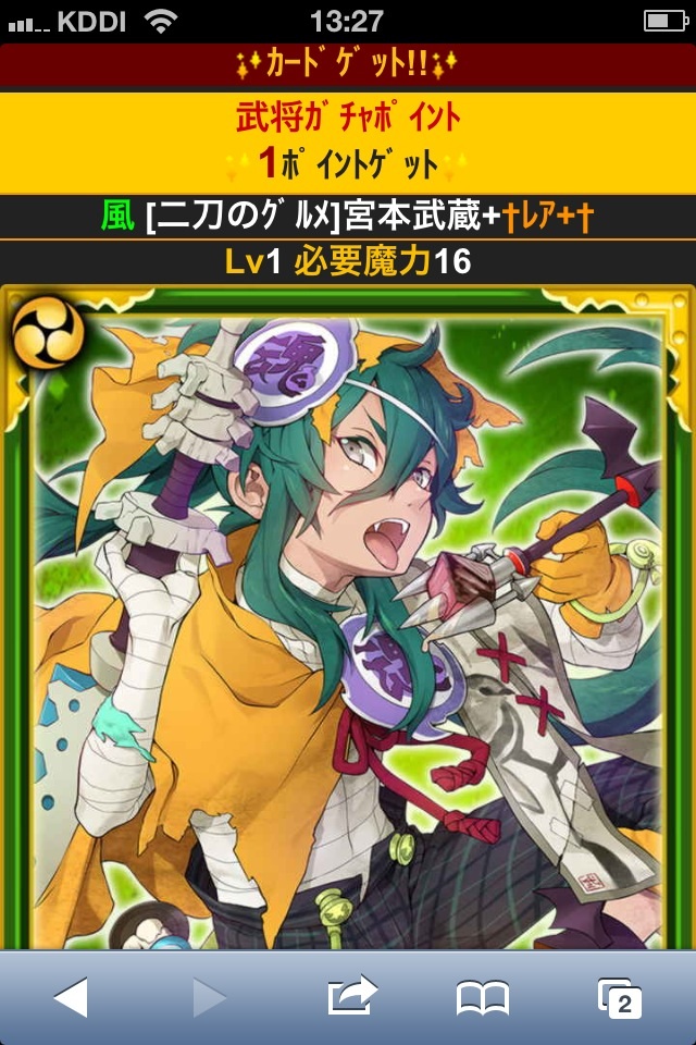 モバとも招待で貰った1500コインで引いたキラアマダレをコバンに変えて、これをGETしました。
