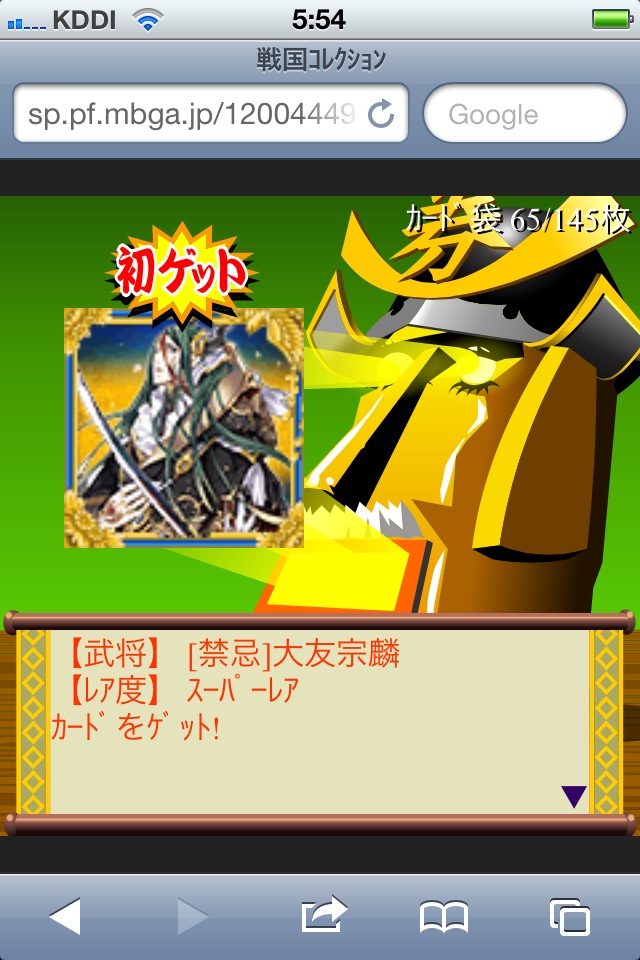 モバとも招待で貰った1500コインで引いたキラアマダレをコバンに変えて、これをGETしました。