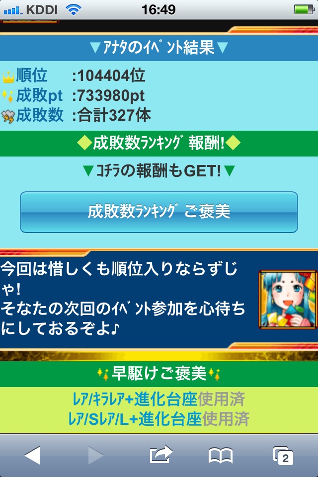 前半の早駆けで、燃え尽きてしまい、後半のランキングは、寝てました(;´Д`A